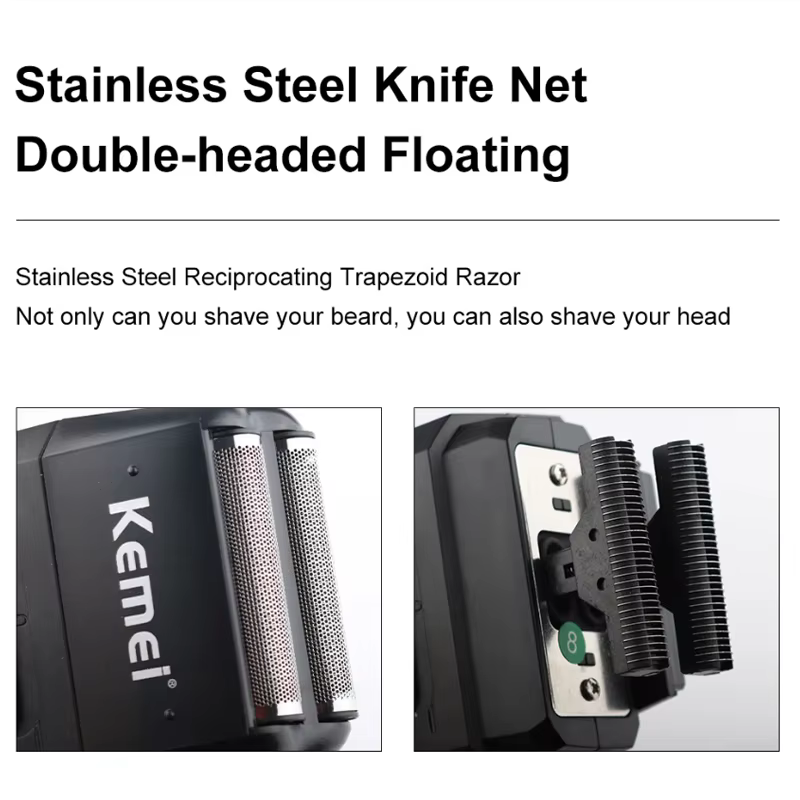 Kemei Rechargeable Cordless Shaver for Men Twin Blade Reciprocating Beard Razor Face Care Multifunction Strong Trimmer KM-1102